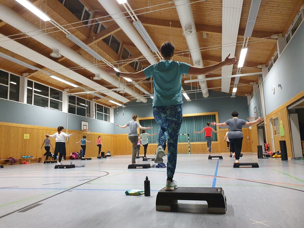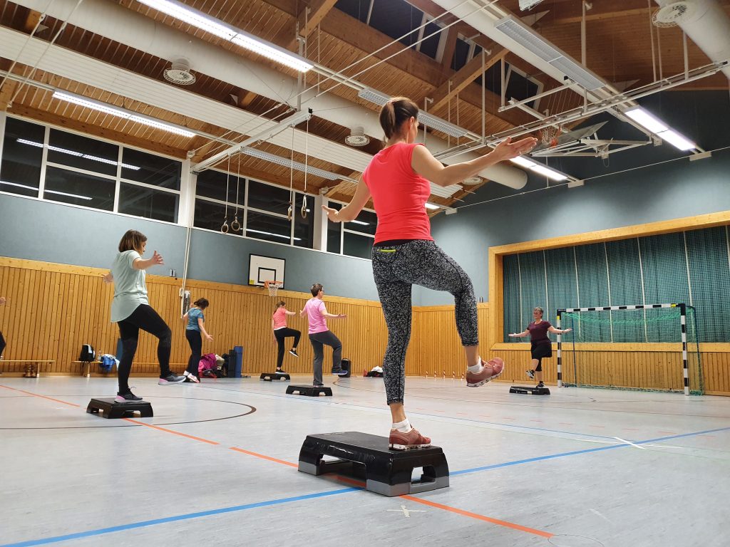 Eine Kombination unterschiedlicher Grundschritte und deren Variation wird Schritt für Schritt aufgebaut und setzt sich zu einer energiegeladenen Choreographie zusammen. Das Training mit oder ohne Step zu motivierender Musik macht einfach Spaß und stärkt das Herz-Kreislauf-System.